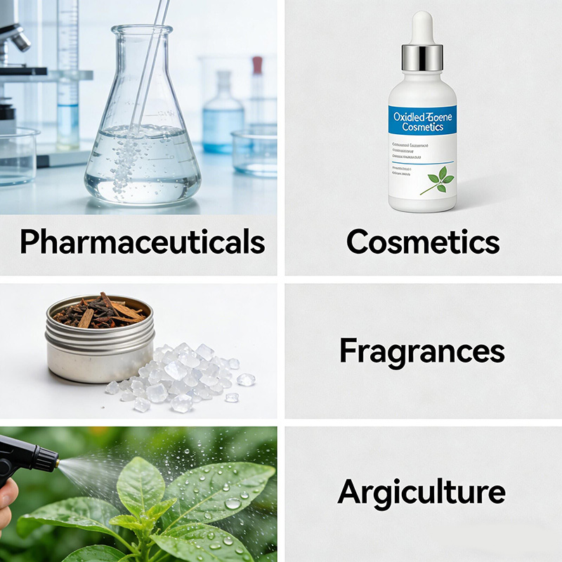 • Cosmetics & Daily Chemicals: Prolongs fragrance longevity (30%-50% for middle/base notes) in perfumes; acts as a safe transdermal enhancer for skincare, and fits oral care/shampoos with its antibacterial benefits.